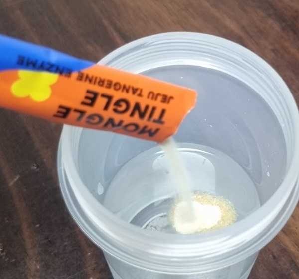 입에 물 한 모금 머금고 효소 가루를 바로 털어 넣는데,