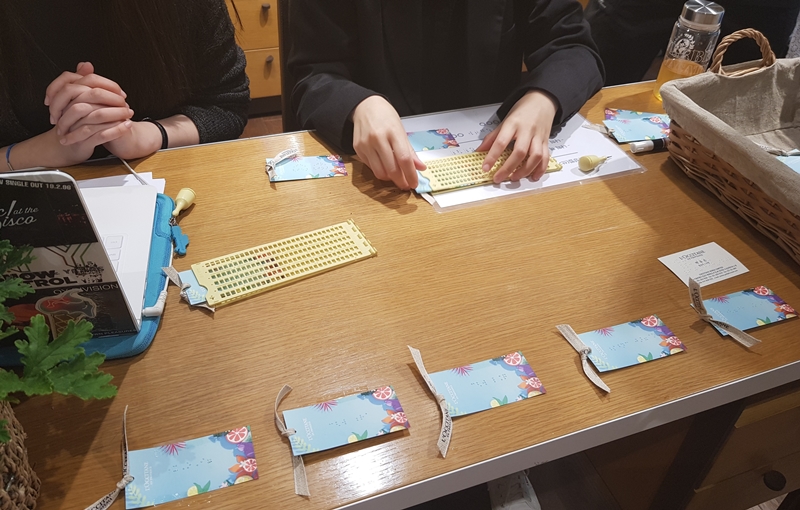 음료를 선택할 때에도 점자 표기를 통해서 선택할 수 있게끔