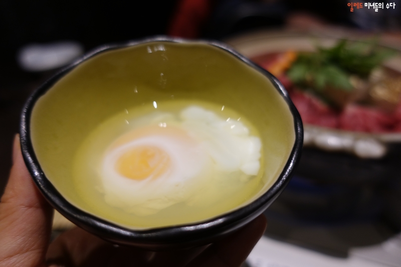 스키야끼를 찍어 먹으면 정말 부드럽고 맛있어요.