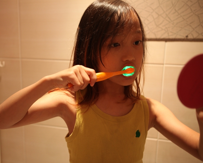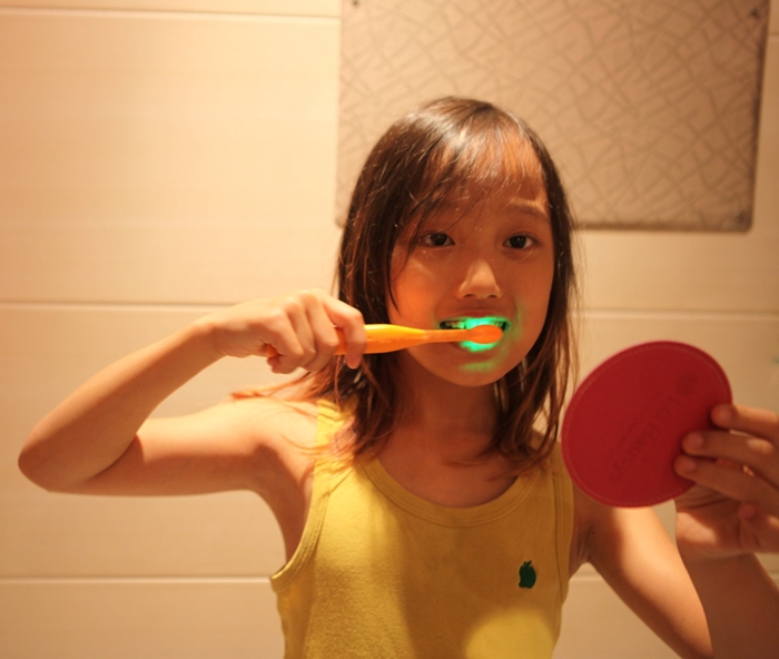 다인이는 불이 켜짐과 동시에 양치를 시작해서