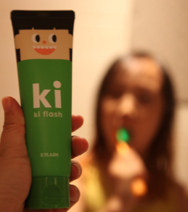 요로코롬 키플래쉬 칫솔에 키플래쉬 치약을 듬뿍 묻히고