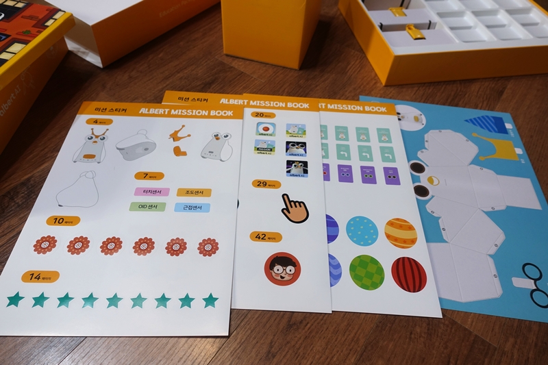 코딩카드와 밀대, 알버트 종이접기 등등이 들어 있고