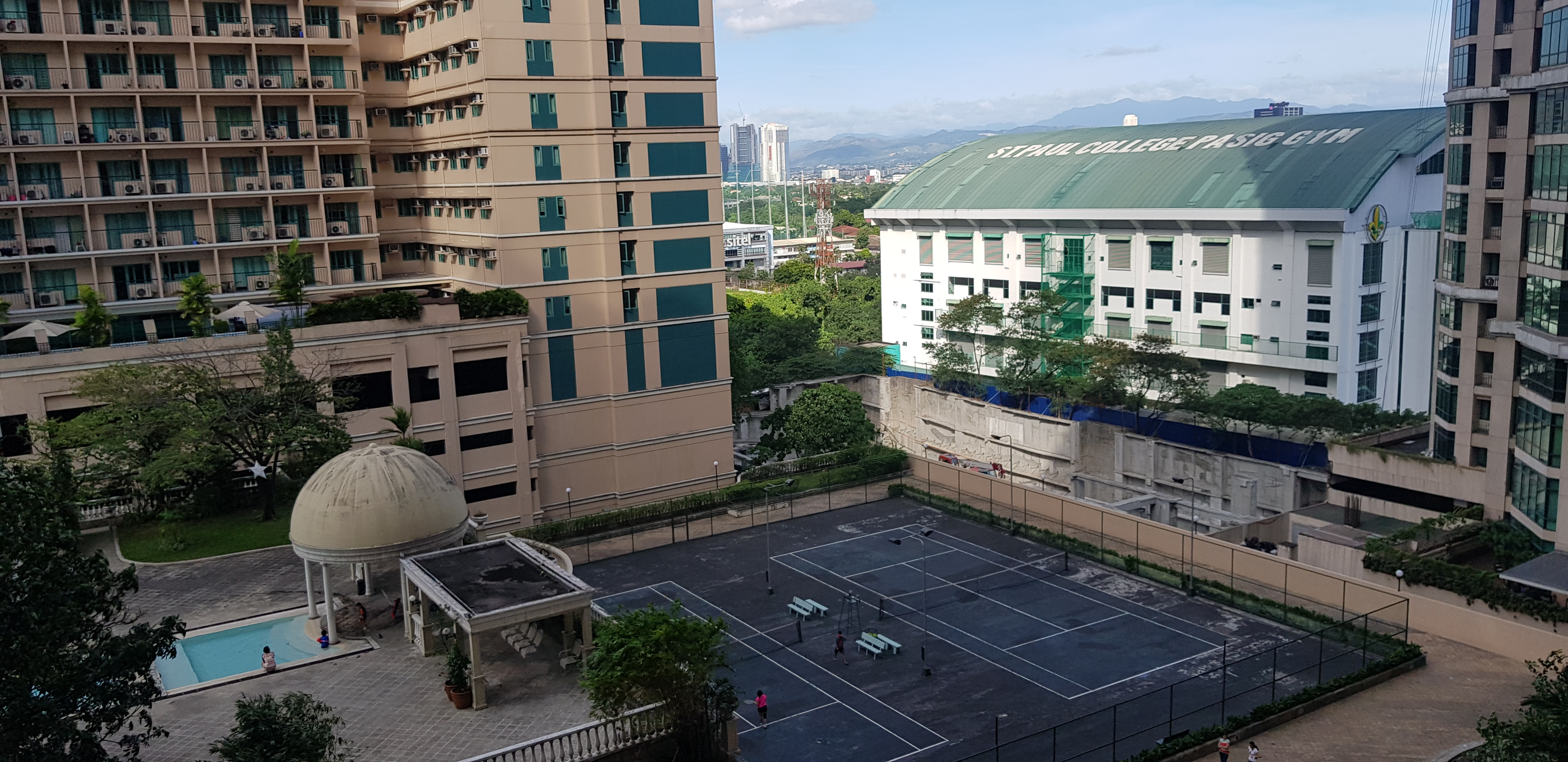 아파트에서 본 풍경인데 근처에 로컬 학교인 세인트폴 학교 있었고, 테니스장과 수영장이 있네요. 보통 필리핀 아파트에 기본 옵션인가 봐요. ^^
