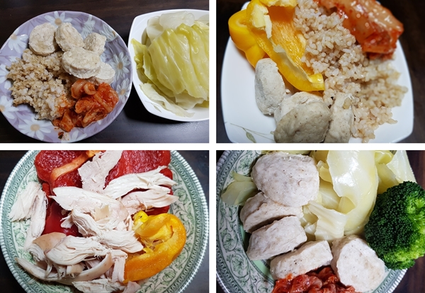 저녁에는 현미밥 100g, 채소, 단백질 100g을 먹었어요.