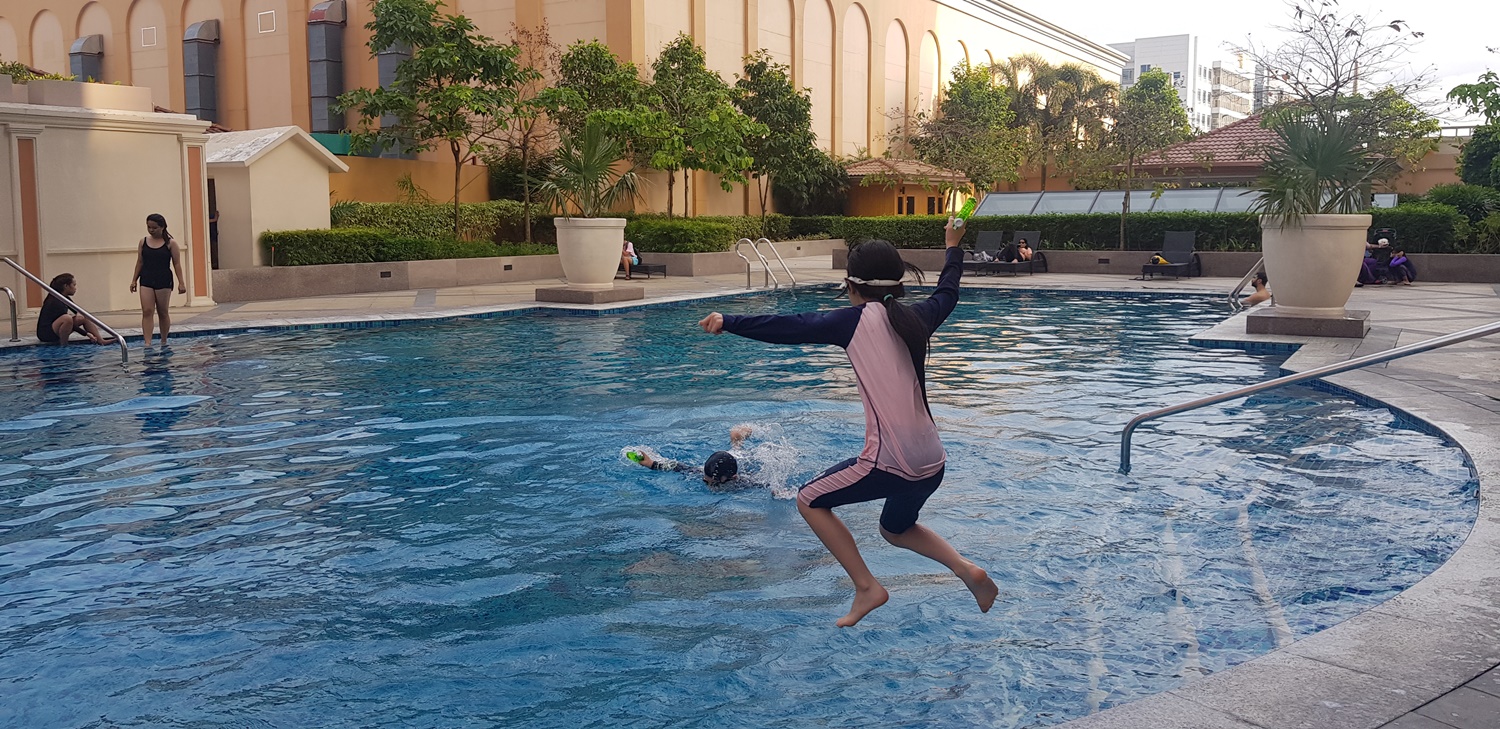 열심히 수영을 하고 난 후 씻고 하이스트리트로 놀러 가기로 했습니다.