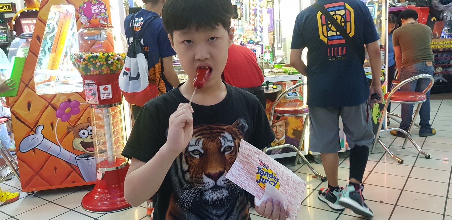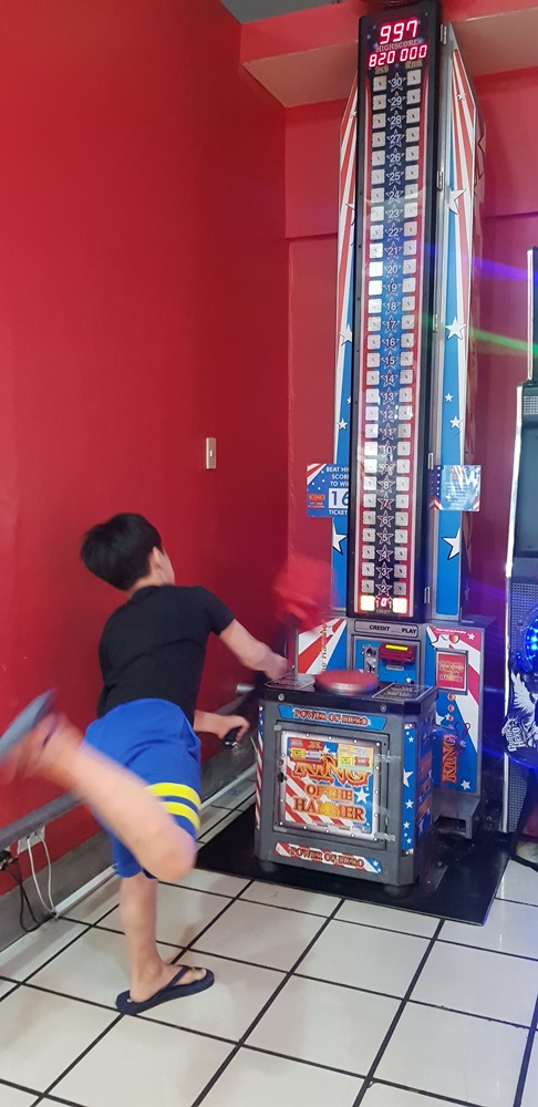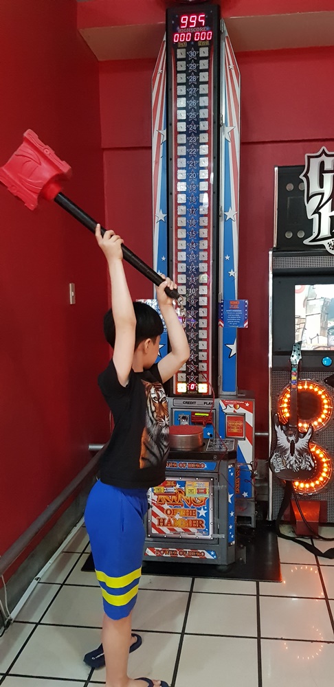 이 날 게임의 하이라이트는 이 헤머 게임. 무려 최고점인 999점을 얻어낸 아들. 늠름한 표정입니다. ㅎㅎㅎ