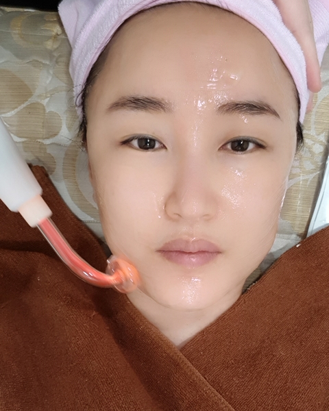 레이저시술 받은 직후에 양쪽 뺨 부분과