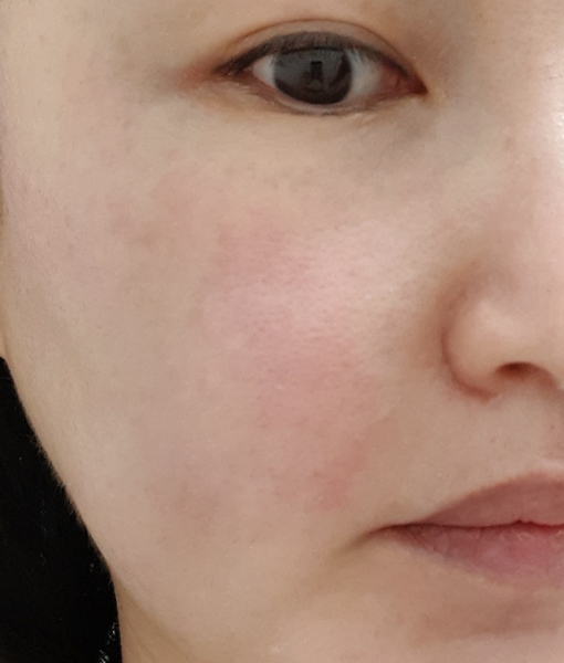 레이저시술 받은 직후에 양쪽 뺨 부분과