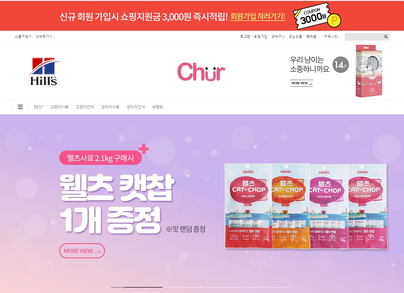 쇼핑몰 츄르에 신규회원가입시 3,000원 적립금 혜택이 있고