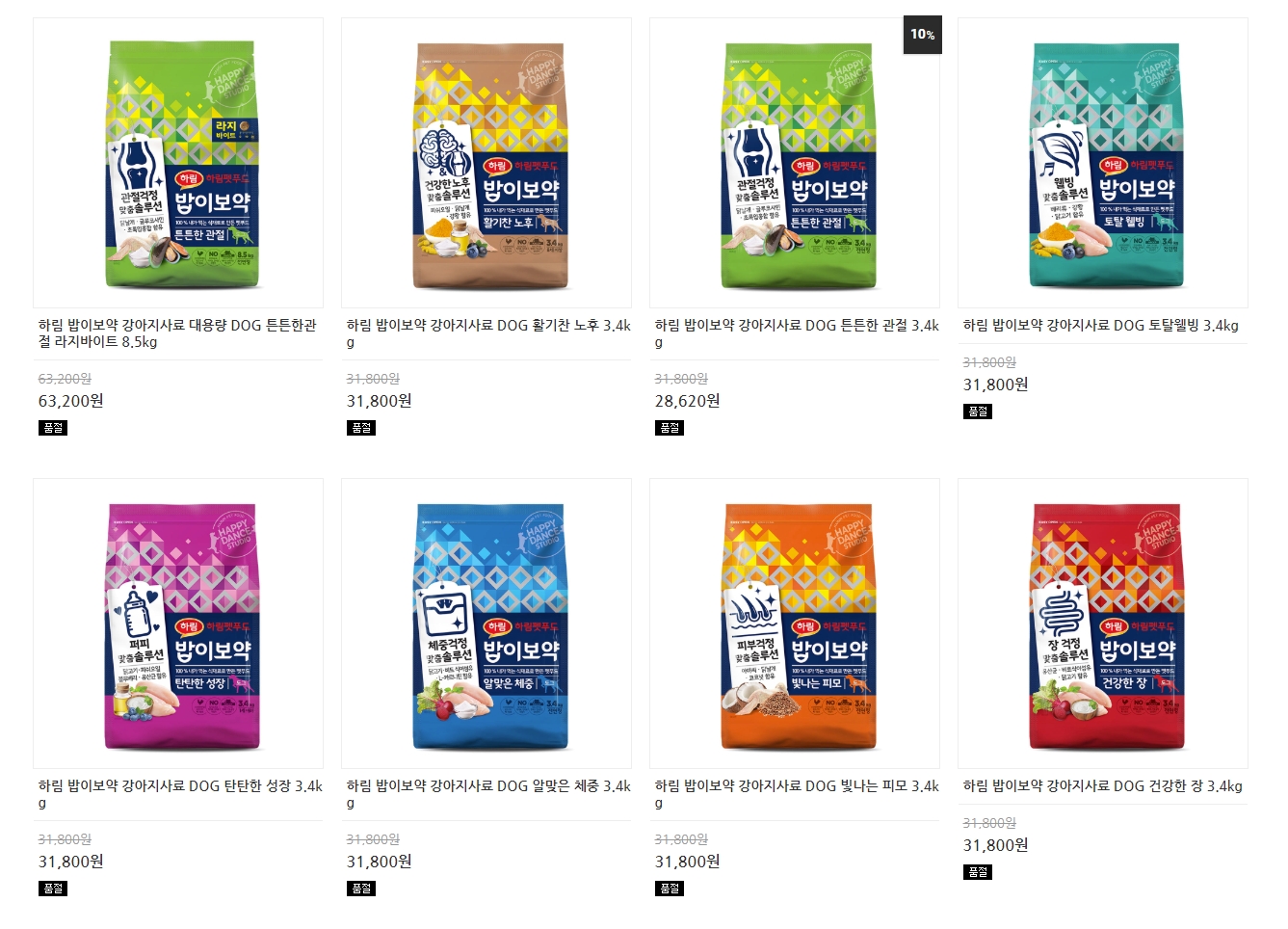 각 브랜드사의 사료, 간식 등