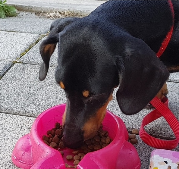 정말 맛있게 냠냠냠 먹는 울 닥스훈트 달콤 군~