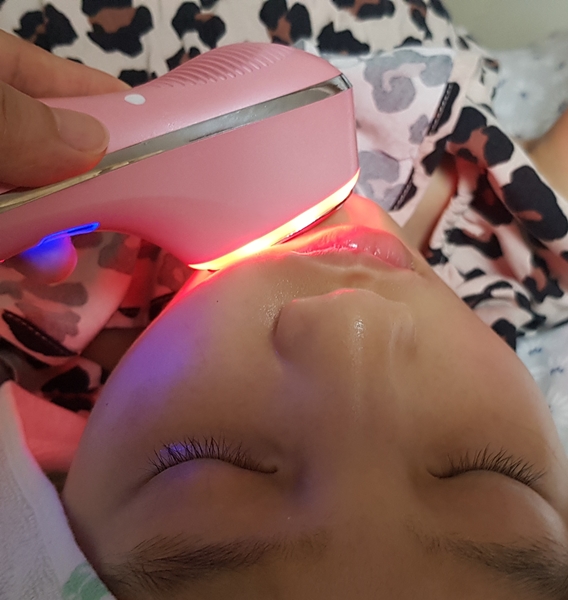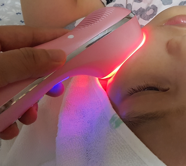 글램온 피부마사지기를 사용해서 딸아이 셀프마사지 해 줄 때