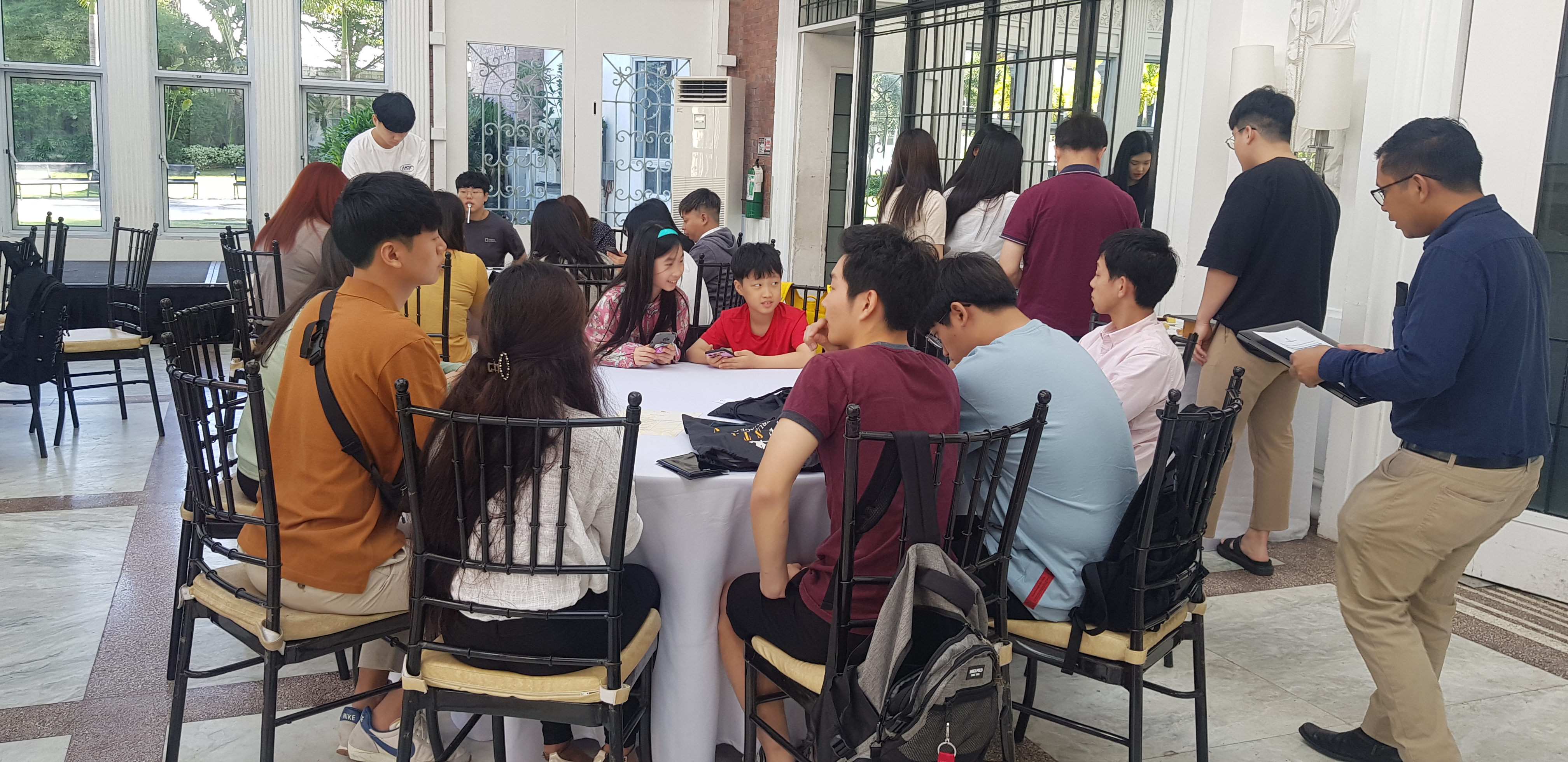 들어갔더니 이미 도착한 학생들이 있더라고요. OT를 하는 시간이어서 오전 9시부터 12시까지는 OT를 진행했습니다.