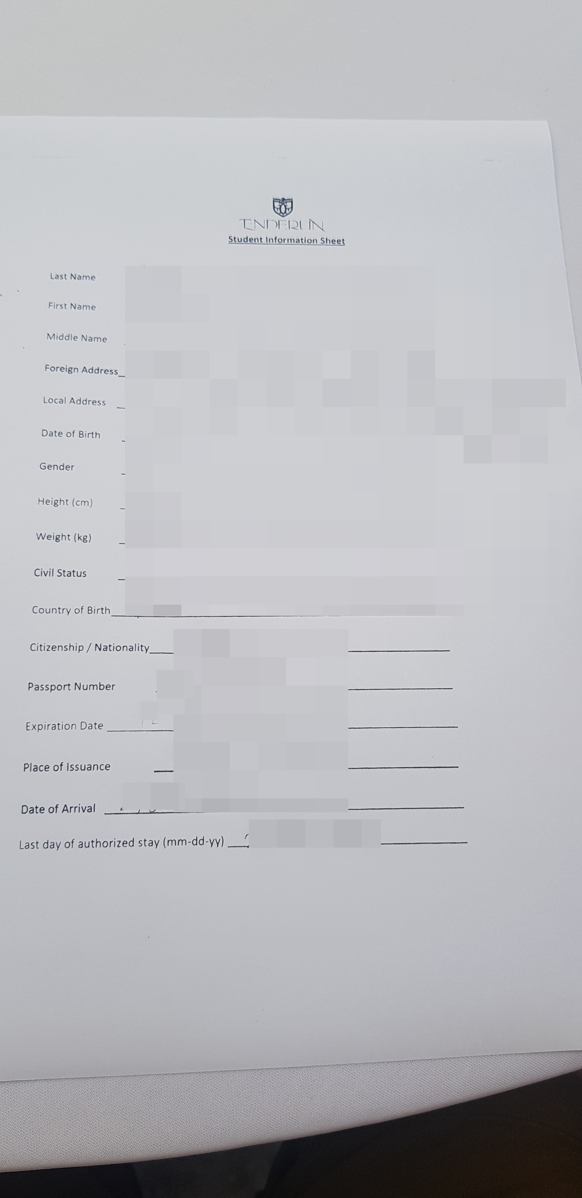 필리핀에서 공부를 하려면 SSP라는 퍼미션을 받아야 하는데요, 이를 위한 정보를 기입하고, 2인치X2인치 사이즈의 사진 2장과 여권이 필요합니다. OT때 작성해서 제출을 하였어요.