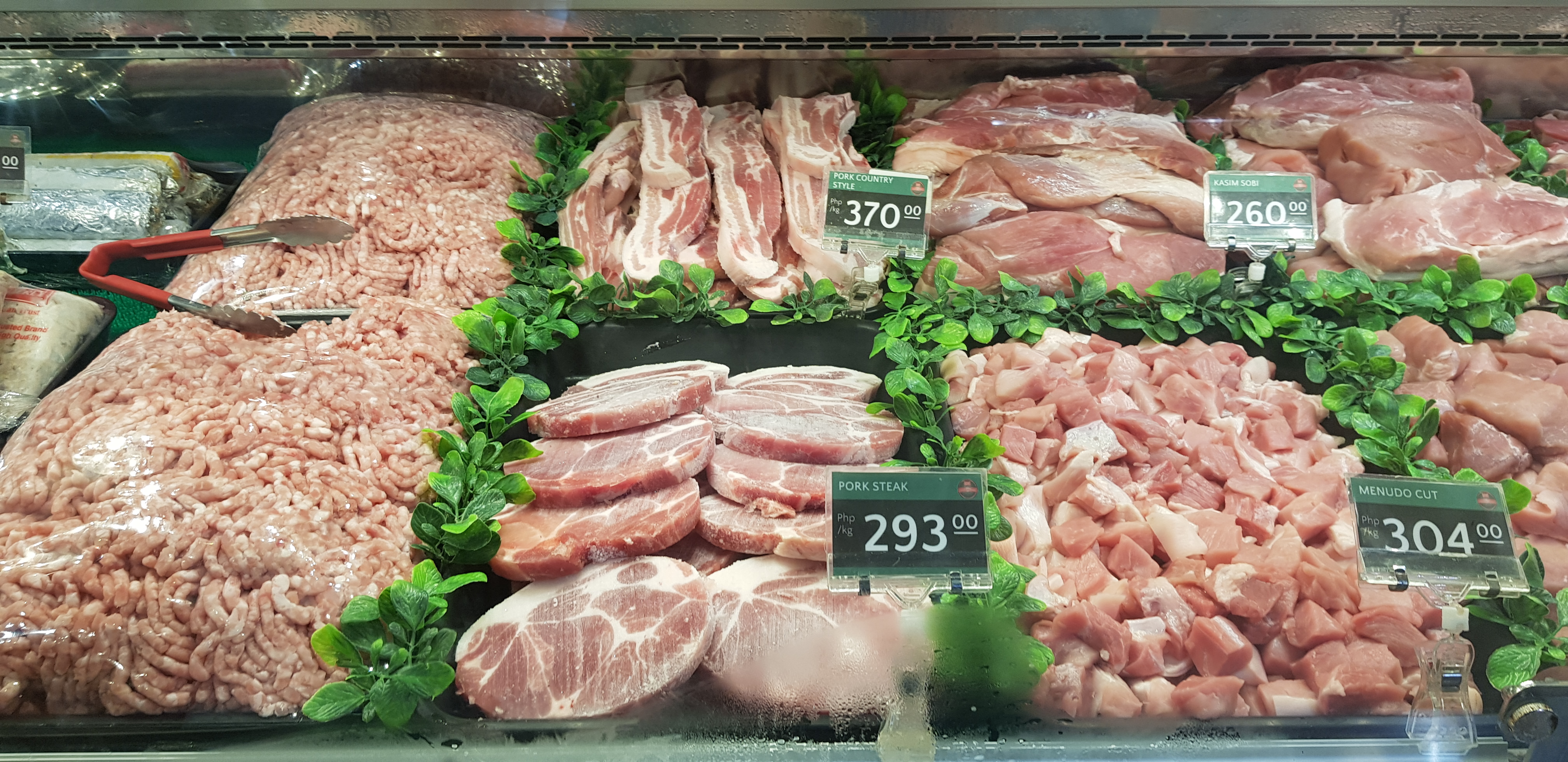 무엇보다 고기가 싸서 냉큼 사 왔습니다. 돼지 목살 같은데 Pork steak라고 쓰여 있는 것을 1kg 사 왔어요. 293 페소면 6천 원 정도 하는 건데 그럼 100g당 600원이잖아요. 우리나라에서 적어도 100g에 1500원 이상 하는데 거의 반값 이하라 얼른 샀습니다. ㅎㅎㅎ