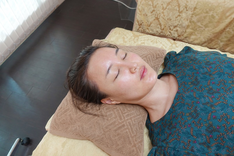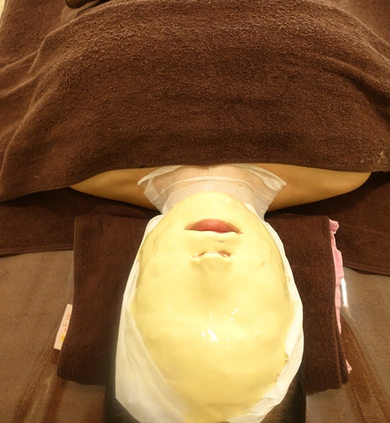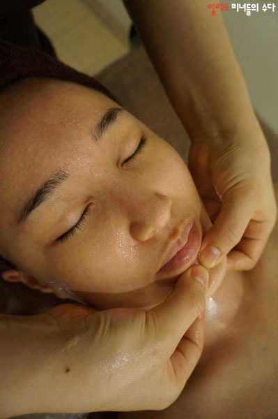 마스크를 떼어내고 남은 에센스와 금가루는 가볍게 두드려 흡수시켜 줍니다.
