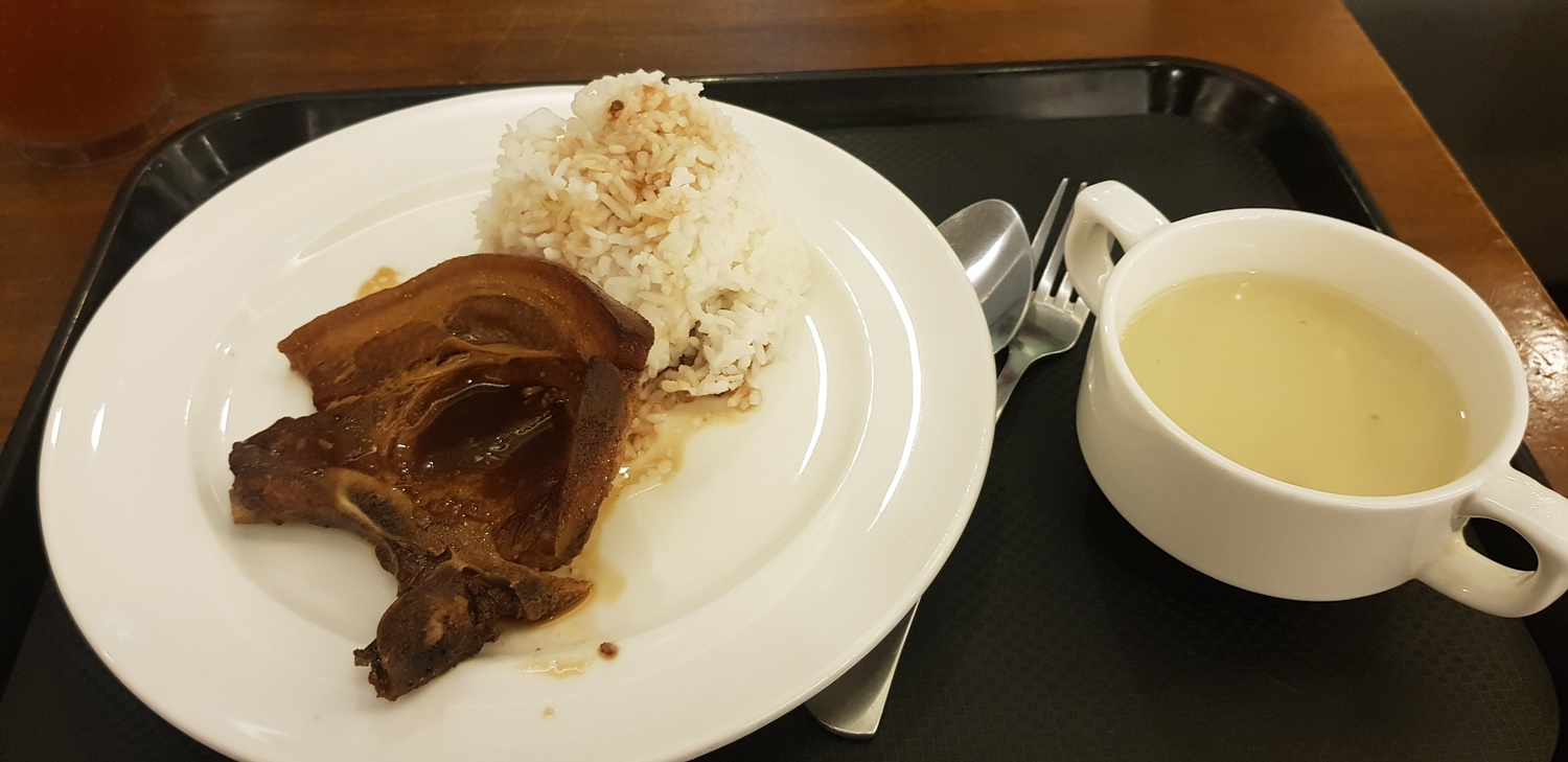 전 닭고기를 선택했어요~ 닭가슴살 한덩이와 야채 그리고 갈비탕 같은 고기 수프와 디저트입니다.