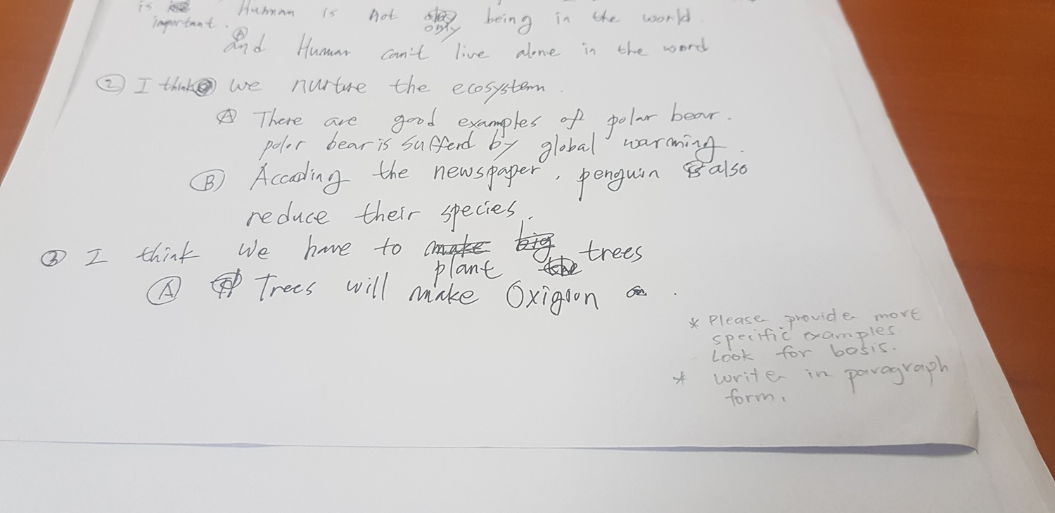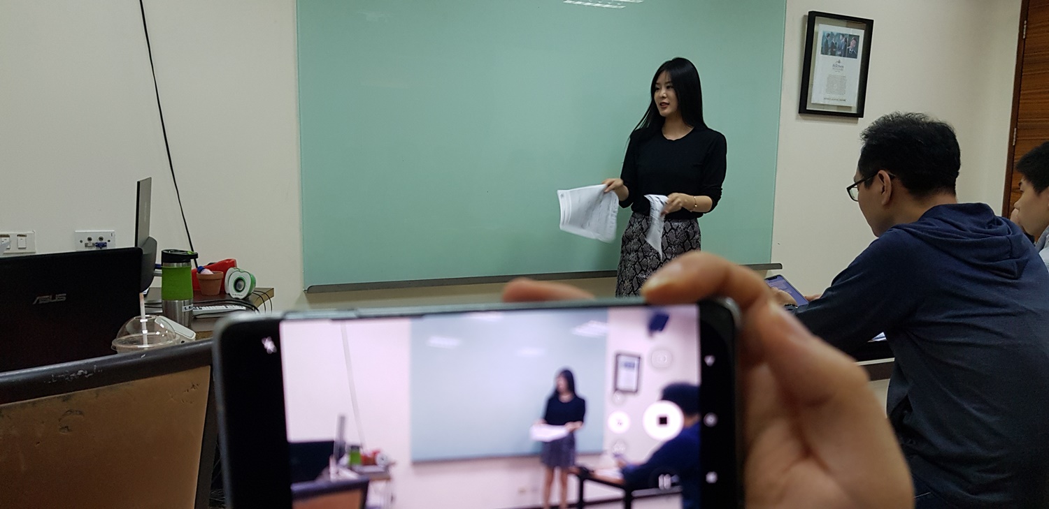 다음은 지난 시간에 내준 숙제인 3가지 주제 중 하나로 5분간 스피칭을 하는 시간이었어요. 제한 시간은 5분이고, 발표 자세나 아이콘텍트등 퍼블릭한 스피킹을 위한 연습이었는데요, 간단한 큐시트만 가지고 청중을 바라보며 이야기를 하는 시간이었습니다.