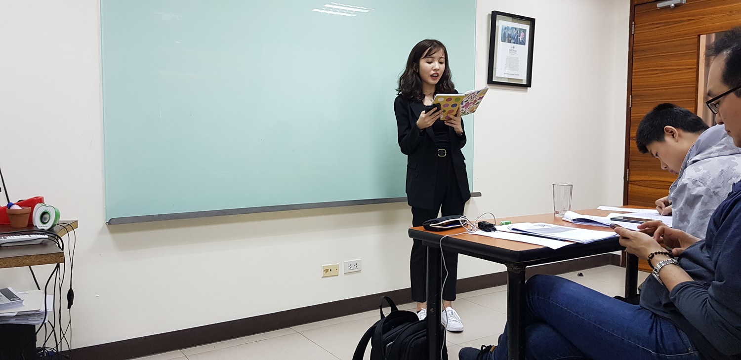 비비안의 발표시간입니다. 영상을 찍어달라고 해서 찍어주고 있는 중이에요. 영상을 보고 다시 고칠 부분을 보고 싶어서 영상으로 남겨놓은 것 같아요. 비비안도 저희 반에서 정말 열심히 공부하는 모범생 중 한 명입니다.