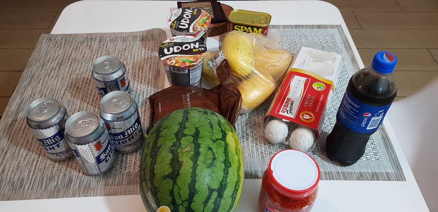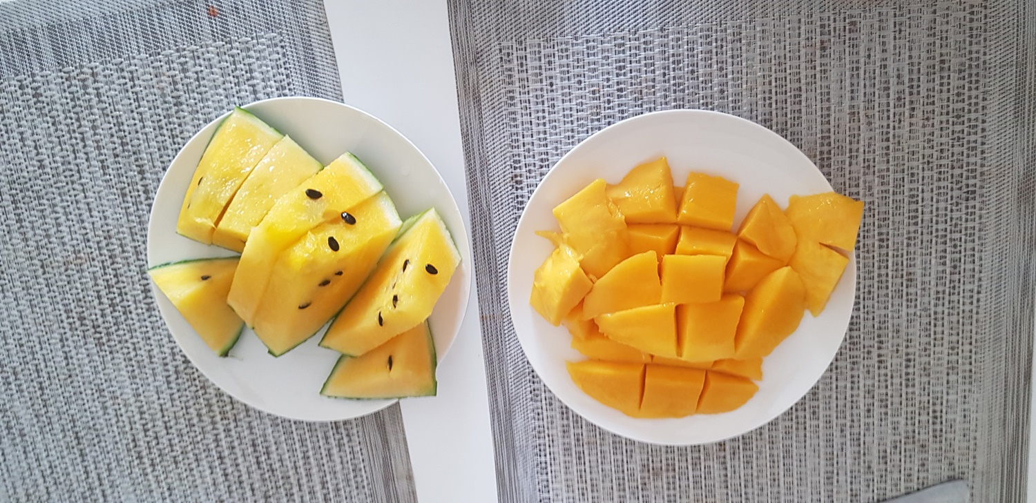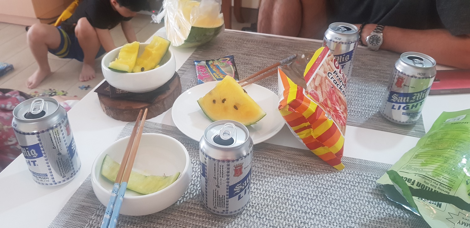 그 덕분에 미리 장봐둔 음식이 너무 많이 남아서 특히 망고가 너무 많이 남아서 아침부터 망고와 수박을 먹었습니다. 수박은 이제 다 먹었고, 망고는 5개 정도 남았어요.