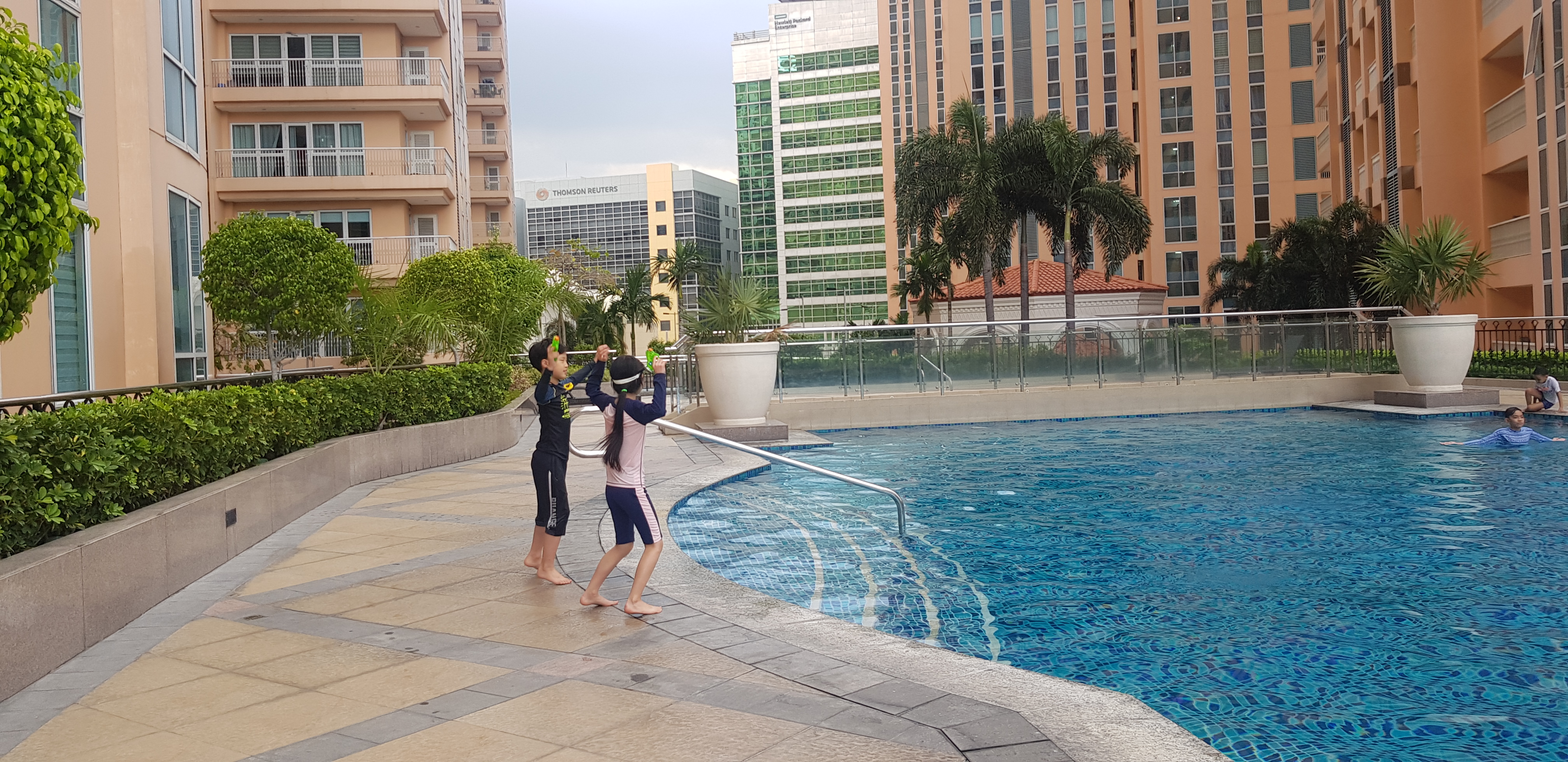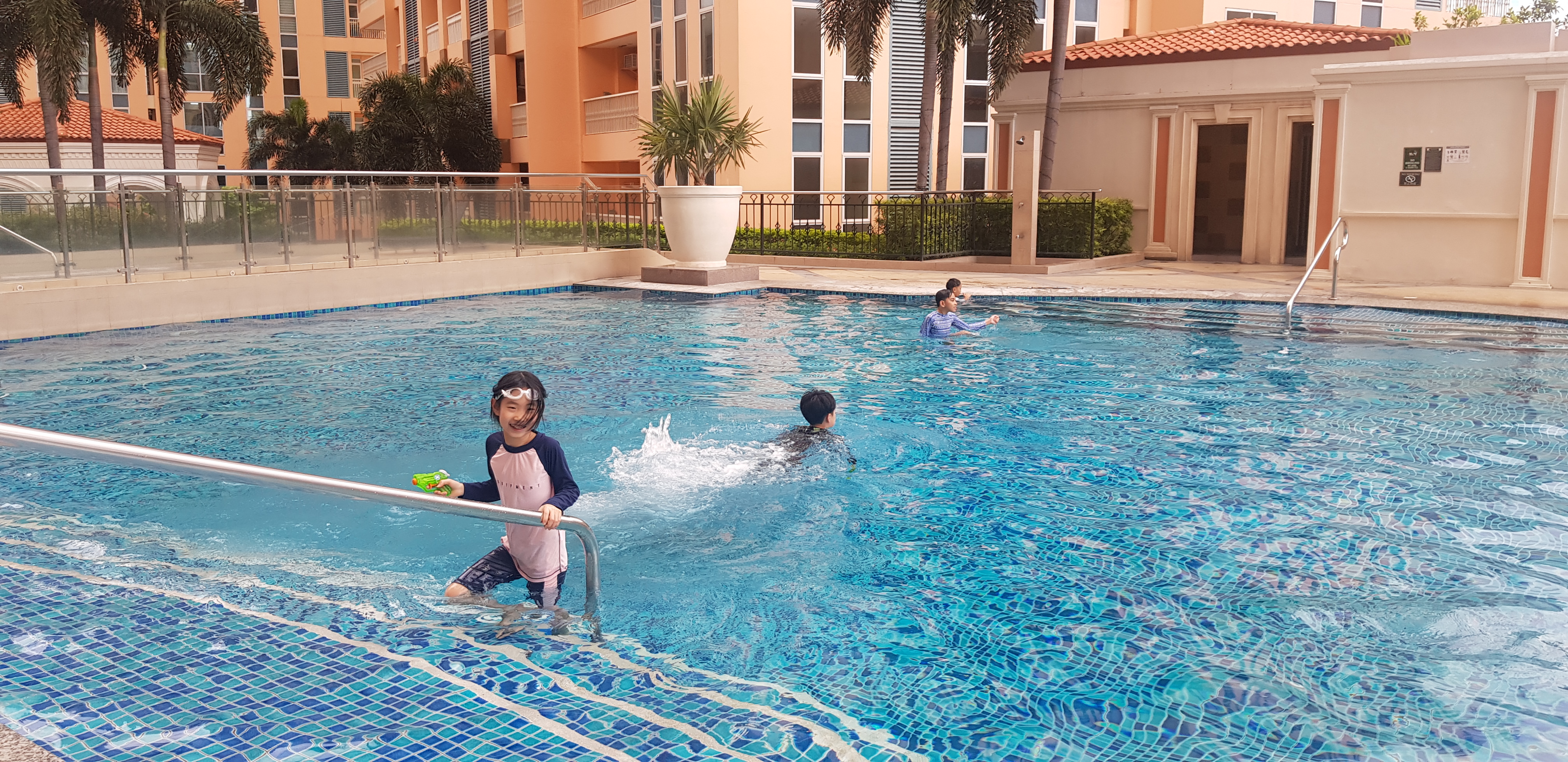 우선 이 수영장은 거주민들만 사용할 수 있기에 그 점도 마음에 들었어요. 수영장 관리도 잘 되어 있더라고요. 직원들이 계속 청소하고 관리하고 있었습니다.