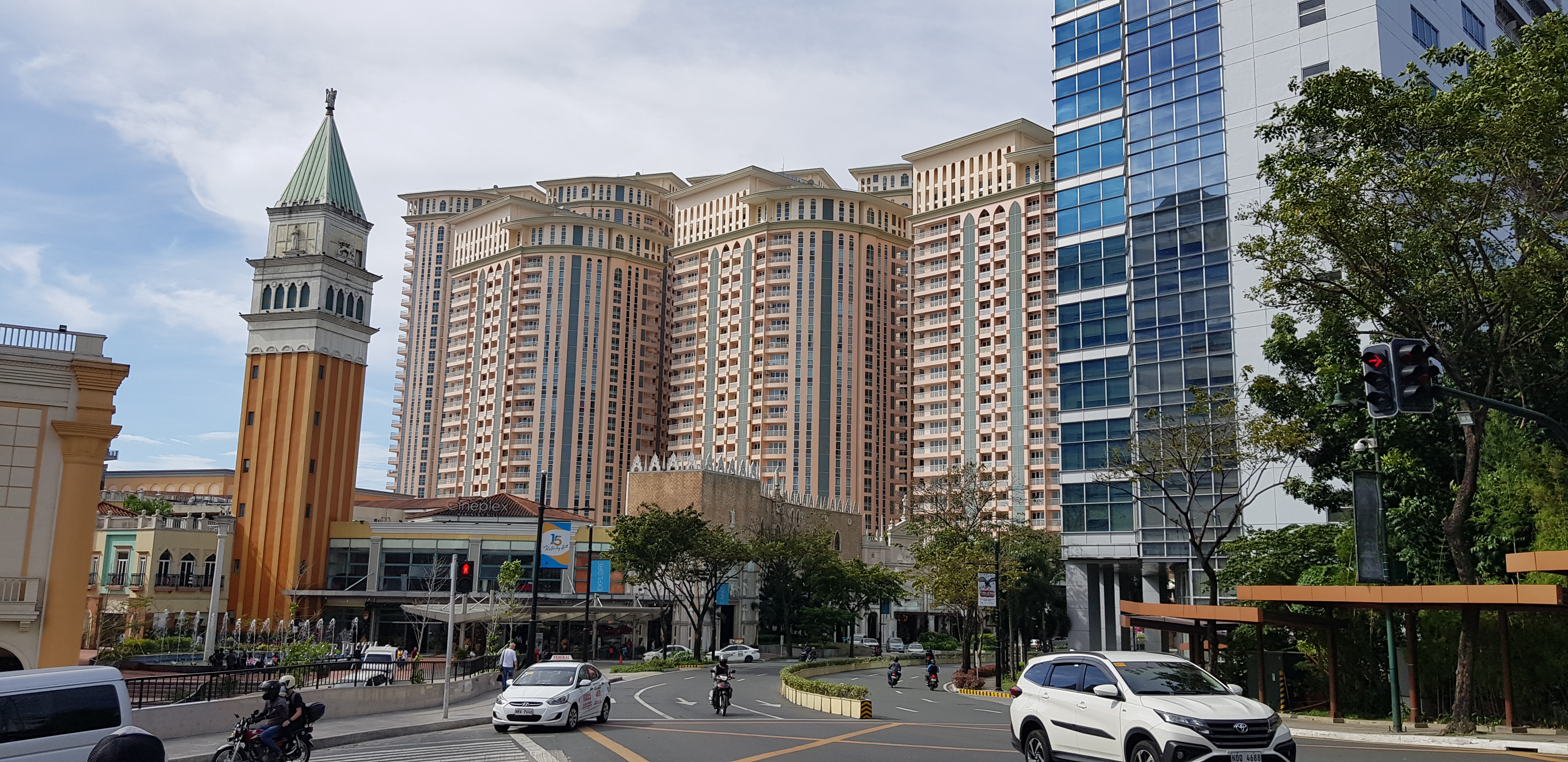 여기가 저희 숙소가 있는 베니스몰이고요, 3개 빌딩 중 가운데 있는 빌딩의 20층에 머물고 있습니다.