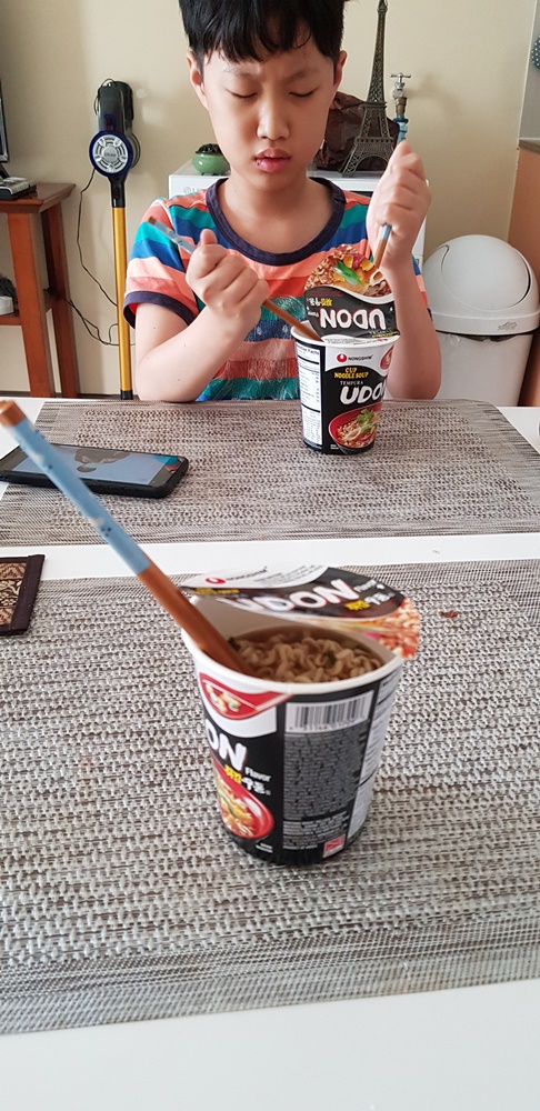 숙소로 돌아와서 빨래도 하고, 놀다가 야식을 먹고 싶은 아들을 위해