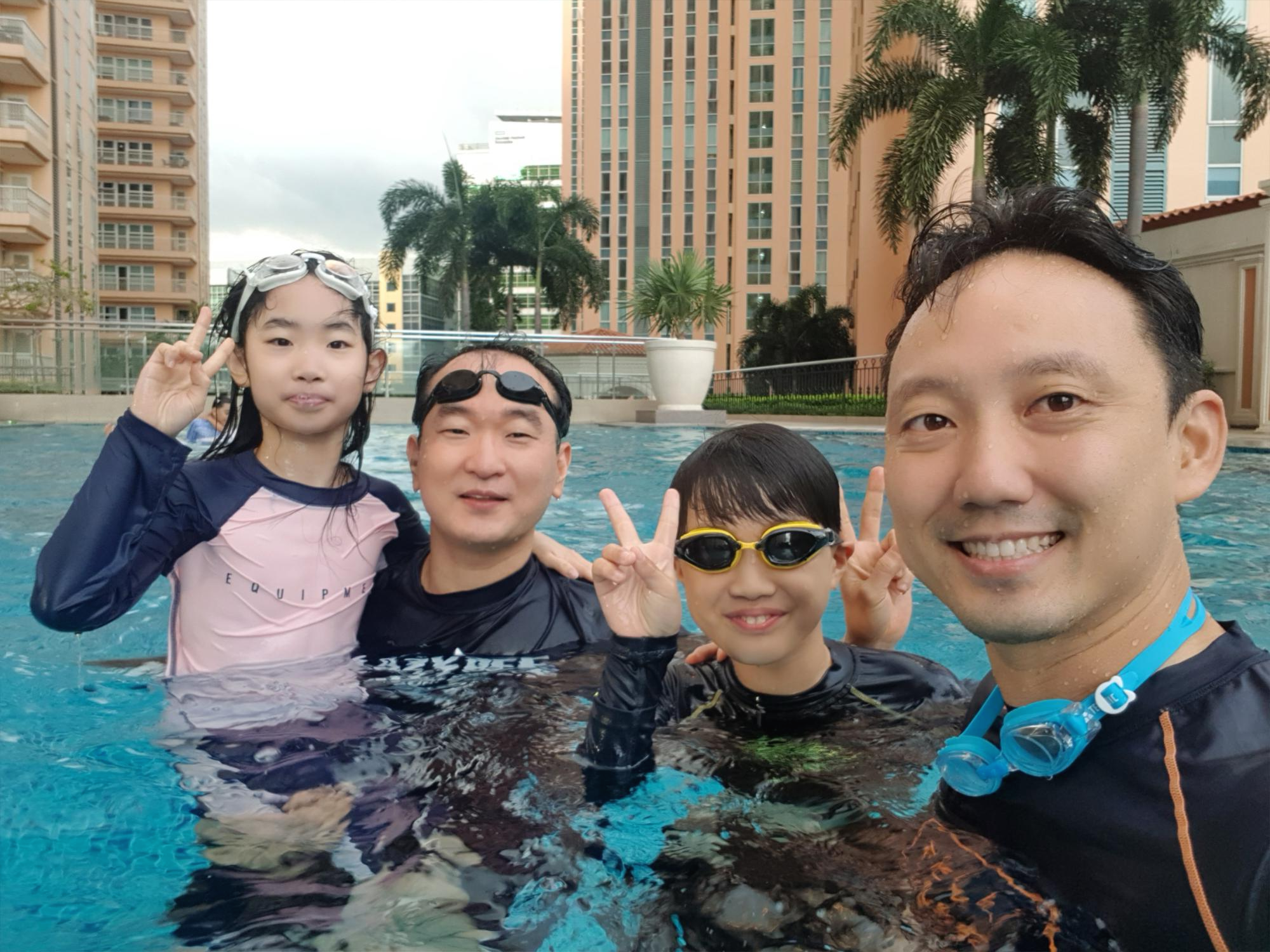저희 말고도 몇 가족이 수영을 하고 있었어요.