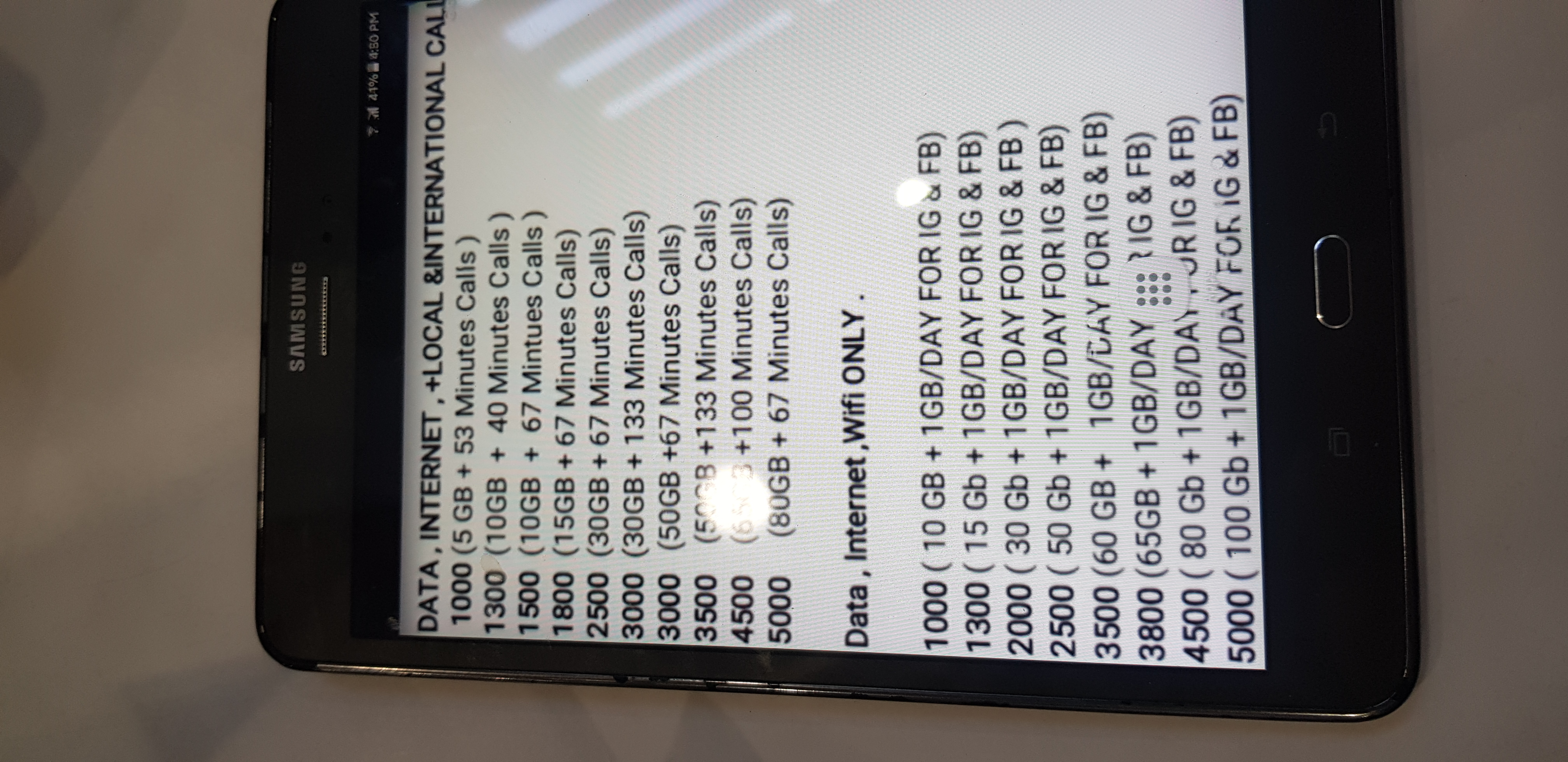 유심은 GLOBE와 SMART가 있는데 현지에 계신 분들이 GLOBE가 더 잘 터진다고 해서 GLOBE로 했습니다. 근데 요금제는 SMART가 더 좋은 것 같아요. 우선 아들과 저 모두 스마트폰이 있고 수업이 다르기에 서로 떨어져 있는 시간이 있을 수 있을 것 같아서 53분 무료 전화에 5GB를 사용할 수 있는 1000페소 짜리 요금을 선택했습니다.