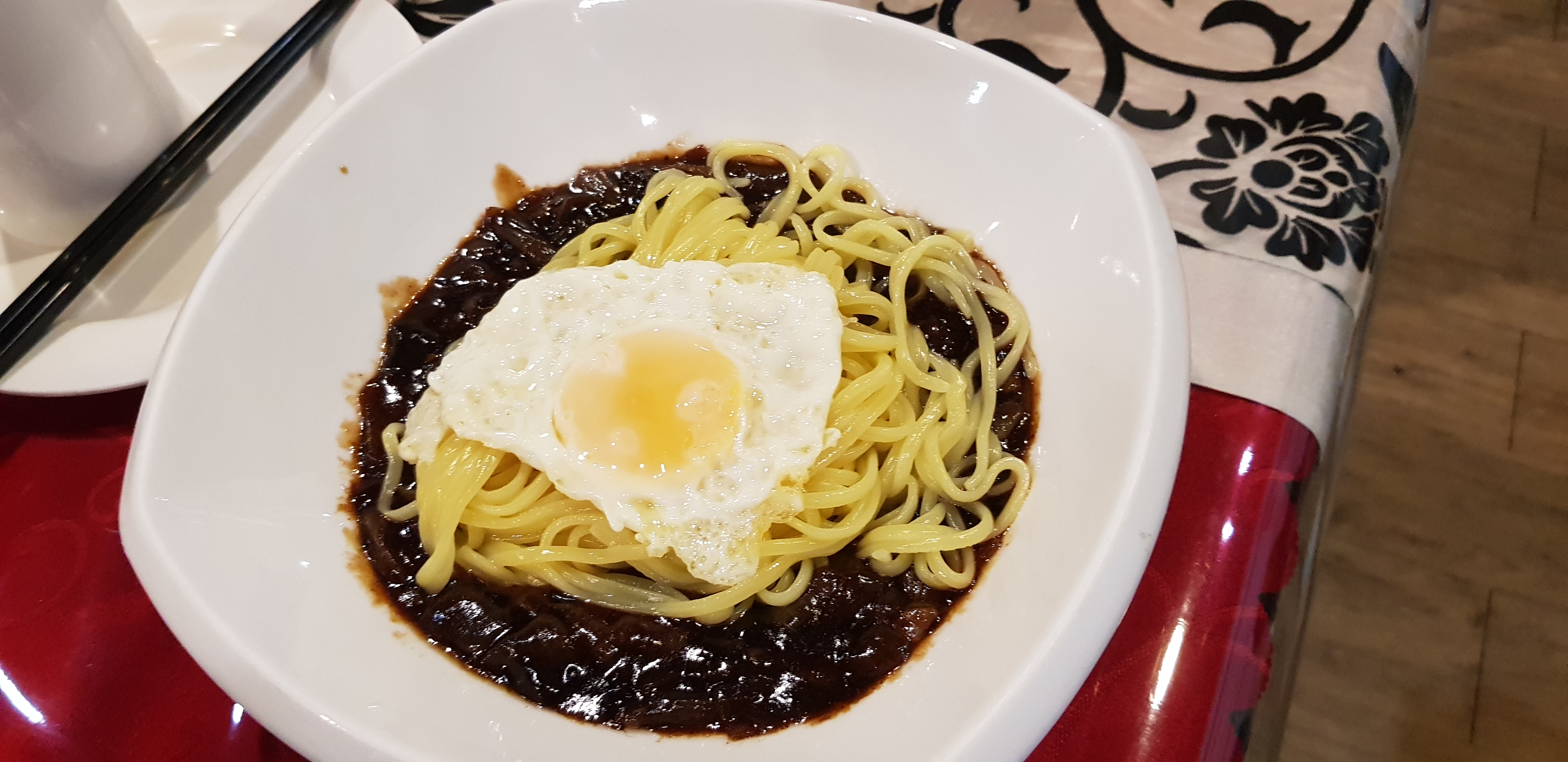 아이들에게는 짜장면을 시켜줬는데 오랜만에 보는 계란 올라간 짜장면이었어요.