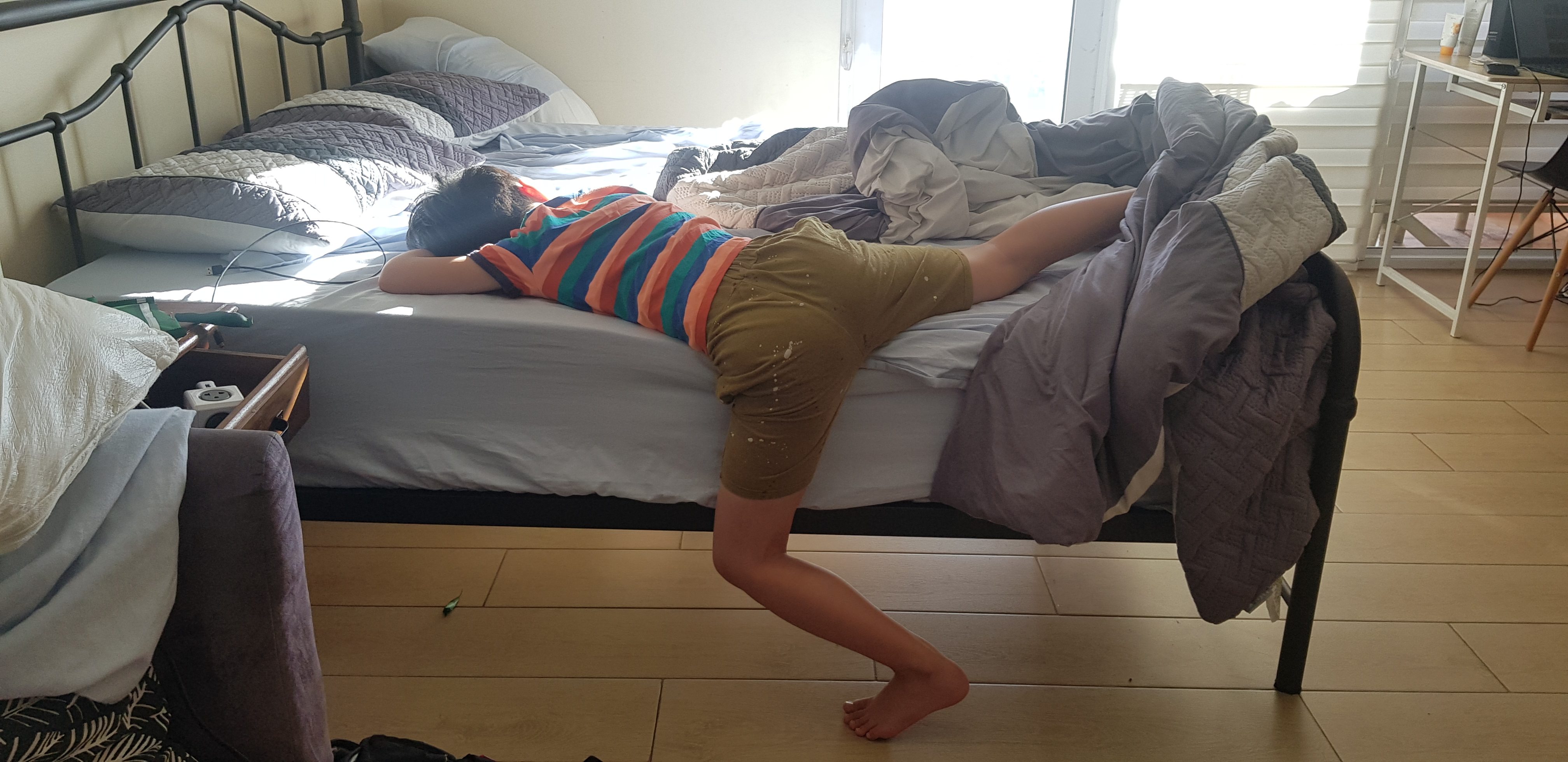 주말이라고 늦게 자고 늦게 일어났습니다. 거의 10시가 넘어서도 자고 있는 아들. 전날 새벽까지 놀다가 잤어요.