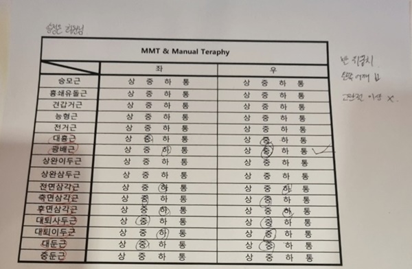 운동기능체크 ? = 체력 근력 테스트를 해 주셨는데
