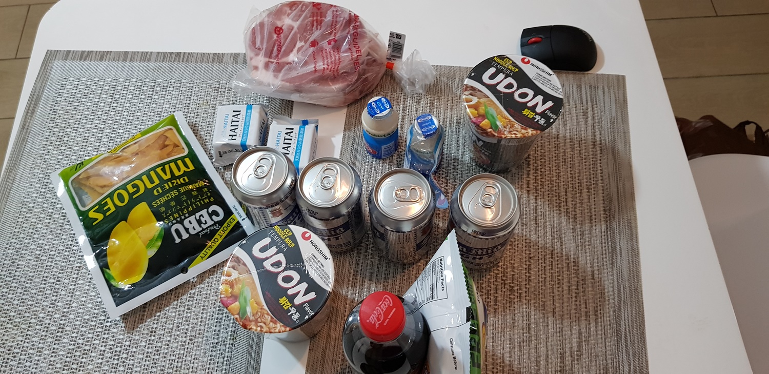 마스크도 사고 먹을거리도 살겸 마트에 갔는데 마침 친구가 있어서 쿠션 전달식이 있었습니다. ^^;; 마스크 사려고 했는데 이미 다 팔렸더라고요. 마스크 사재기가 현지 뉴스에 나올 정도니 우선은 숙소에서 상황을 지켜봐야 할 것 같습니다.
